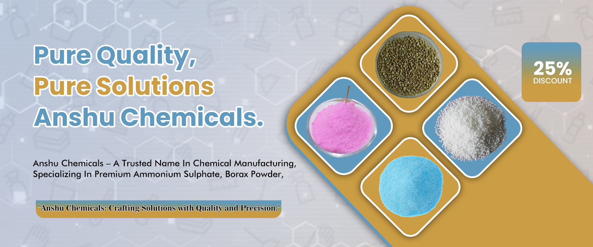 Welcome to Anshu Chemicals, a trusted name in the chemical industry, specializing in the supply of premium-grade Ammonium Sulphate and Borax Powder. With a commitment to quality and consistency, we provide essential chemical solutions that support various industrial, agricultural, and commercial applications.